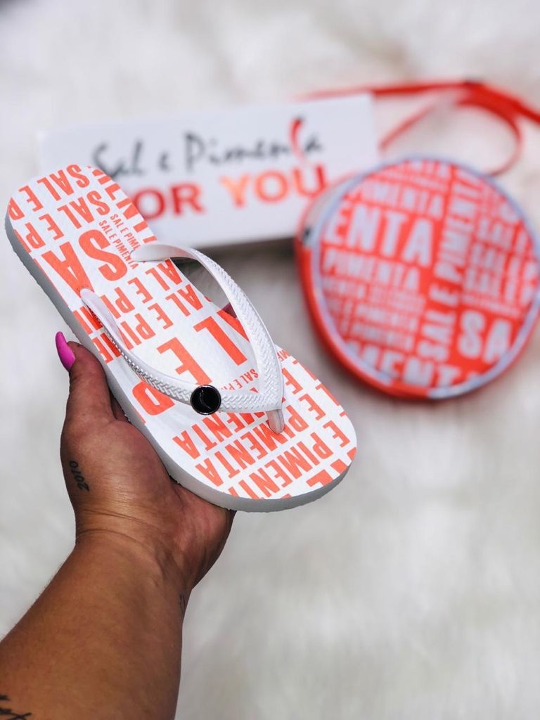 CHINELO HAVAIANAS ESTAMPA LETREIRO E PINGENTE, CALÇA SUPER BEM.
