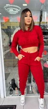 Conjunto Tricô Blusa manga longa e Calça com estampa de letreiro.