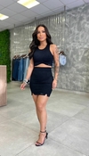 Conjunto Saia cintura alta com Cropped com regata tecido canelado que estica e