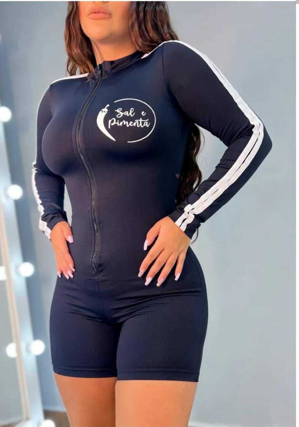 Macacão curto Manga longa com Ziper Moda Gringa Estilo Shein