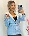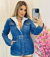 Parka Jeans com capuz Max Forrada por dentro, com cinto removível, Veste super bem.